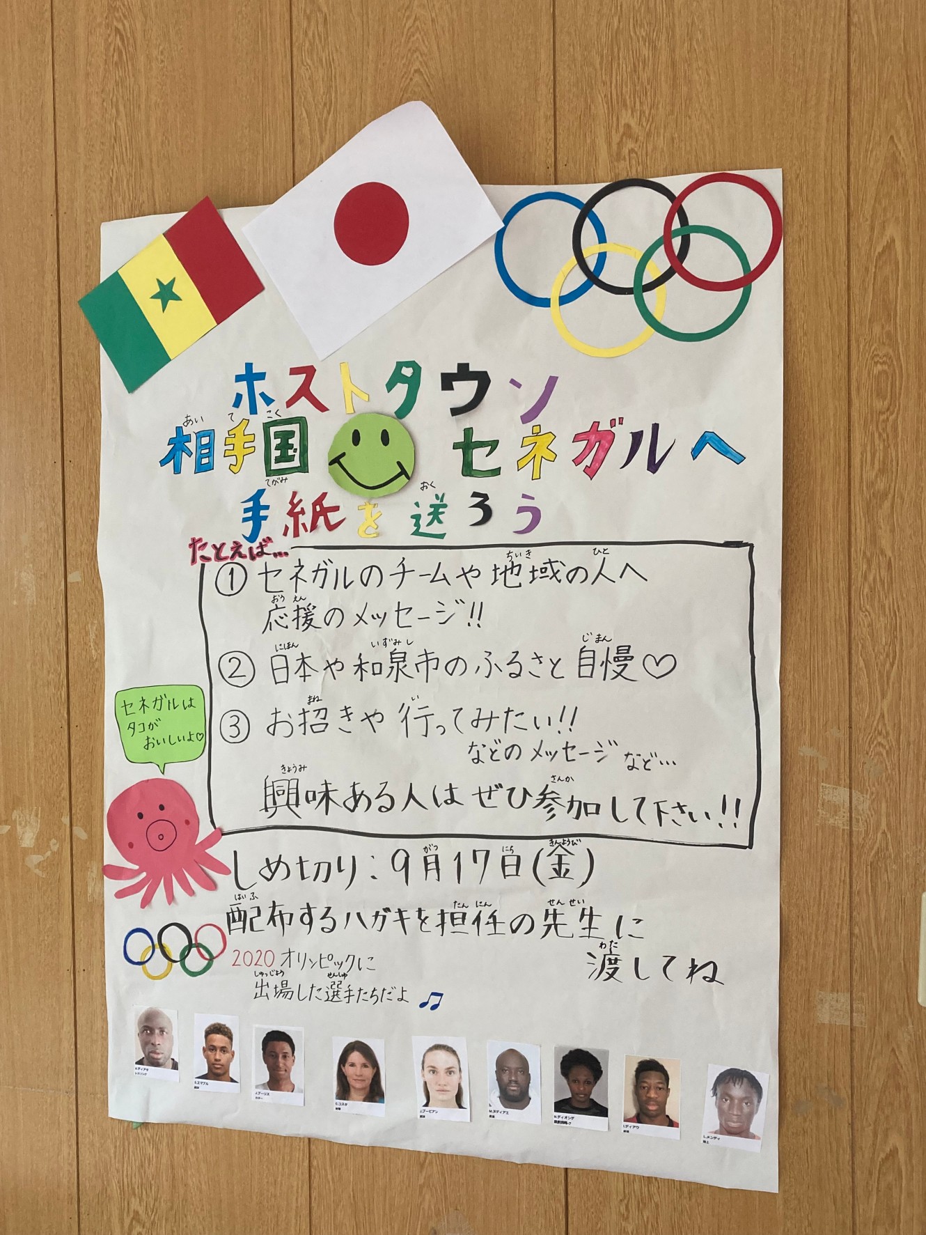 和泉市は、東京2020オリンピック、パラリンピックのセネガル共和国のホストタウンとなっています。「ホストタウン相手国・地域へお手紙を送ろう!」は、ホストタウン登録自治体を民間が支援する「beyond2020」の一環として、日本郵便株式会社が実施している全国の学校に提供されている東京2020公認プログラムです。
